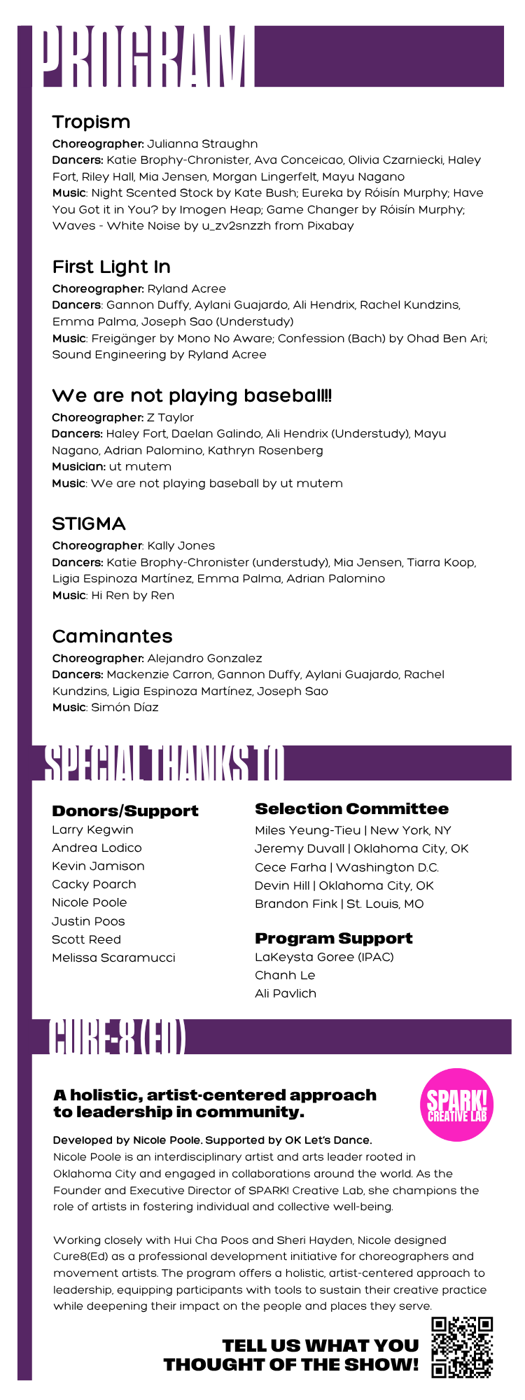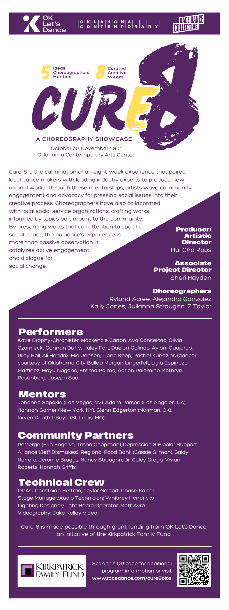 Cure-8 is presented in partnership with Oklahoma Contemporary Arts Center and is made possible through a grant funding from OK Let's Dance, an initiative of the Kirkpatrick Family Fund.